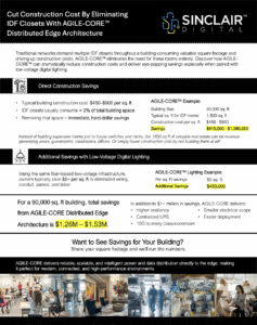 Sinclair® Digital’s AGILE-CORE® Distributed Edge Architecture is a high-performance, intelligent power distribution and control system engineered for modern stand-alone or converged IT networks, OT end points and smart lighting systems.
